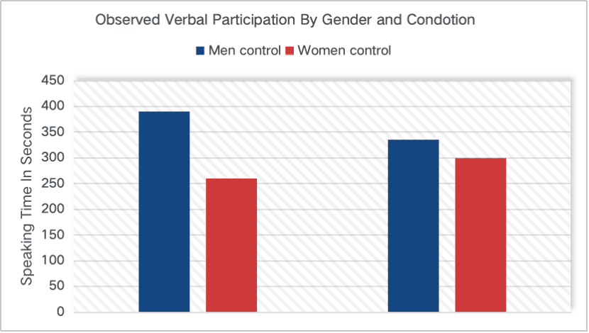 The research conducted by Lewis et al. (2019) demonstrated that among STEM students, under control conditions, men spoke longer than women in meetings, but after watching the intervention video, the speaking time of men and women was equal. This proves that video intervention methods can reduce gender bias in the STEM field, and in addition to changing the cognition of the participants, it also has a positive impact on their behavior (Figure 9).