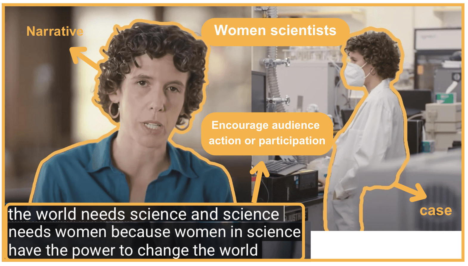 b. Female scientists are predominantly featured as protagonists, strengthening the identification with role models for female viewers.